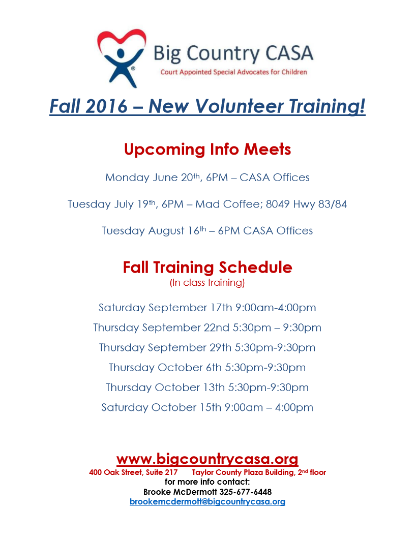 New Volunteer Training Dates