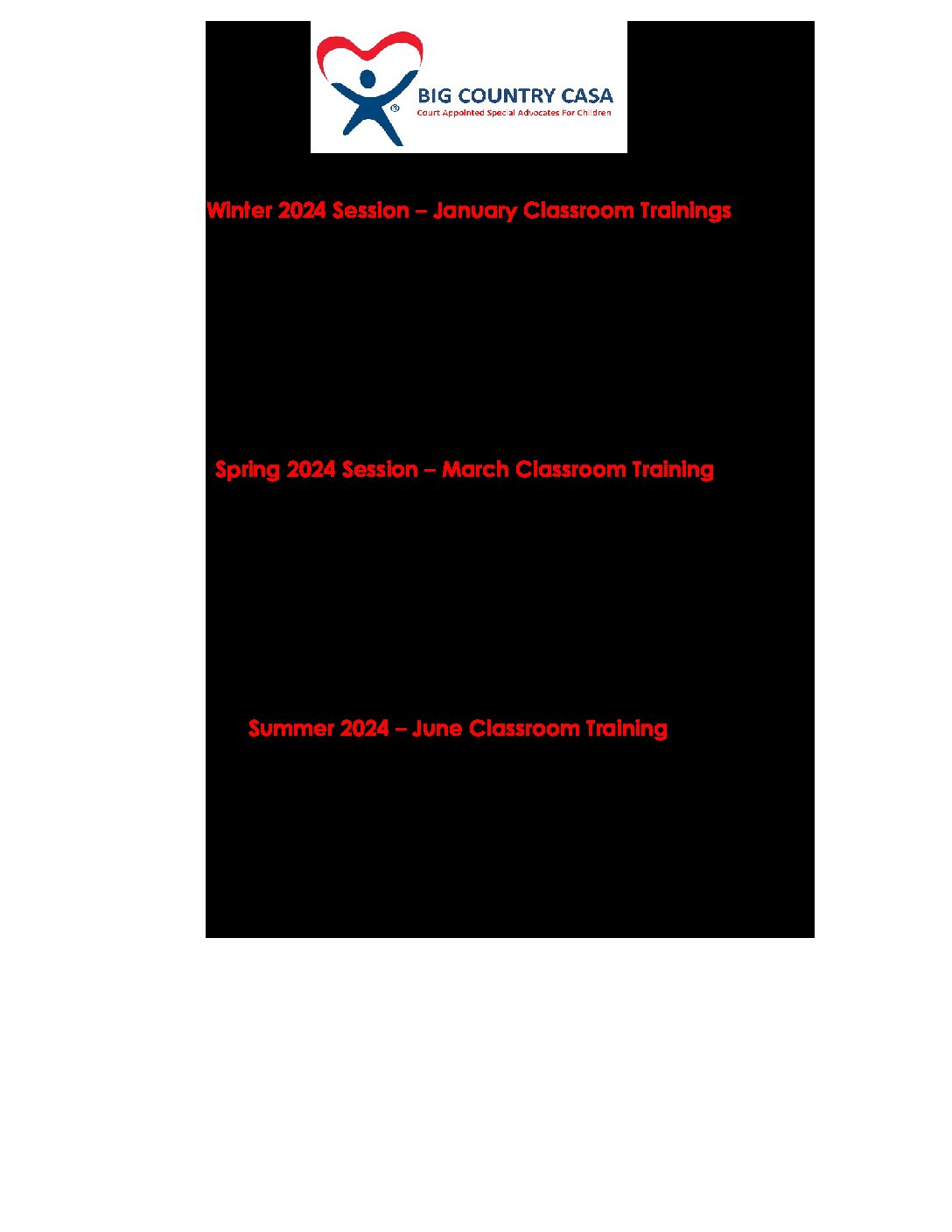 2024 Advocate Training Calendar